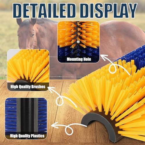 El cepillo ZYODUOB sirve para masajear y limpiar ganado en corrales. Las cerdas de PVC flexible eliminan parásitos externos con suavidad. El mango largo permite alcanzar la espalda de animales altos. Incluye orificios de drenaje para lavado rápido tras el uso. Pesa 300 gramos para manejar sin cansancio. El diseño curvo sigue la anatomía equina y bovina. Perfecto para establos al aire libre con barro constante. Un utensilio versátil para higiene rural diaria.